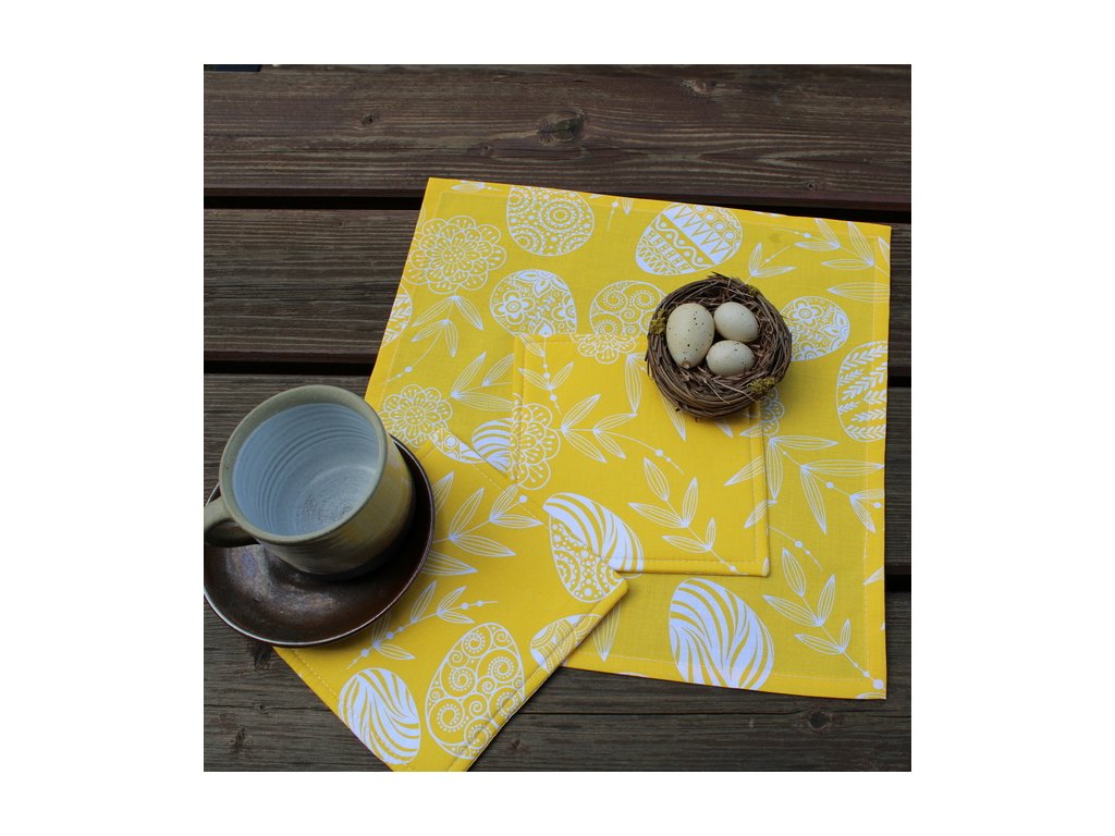Běhoun můžete doplnit o ubrousky, a podložky pod hrnky. Pěkným doplňkem je zajíc- původně velikonoční dekorace, ale nakonec je to celoroční oblíbená dekorace..