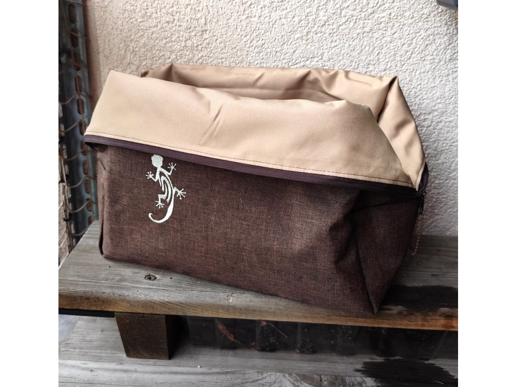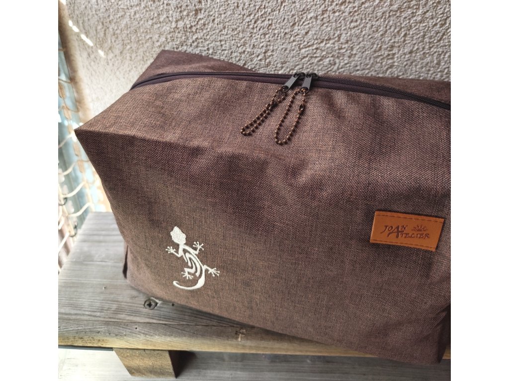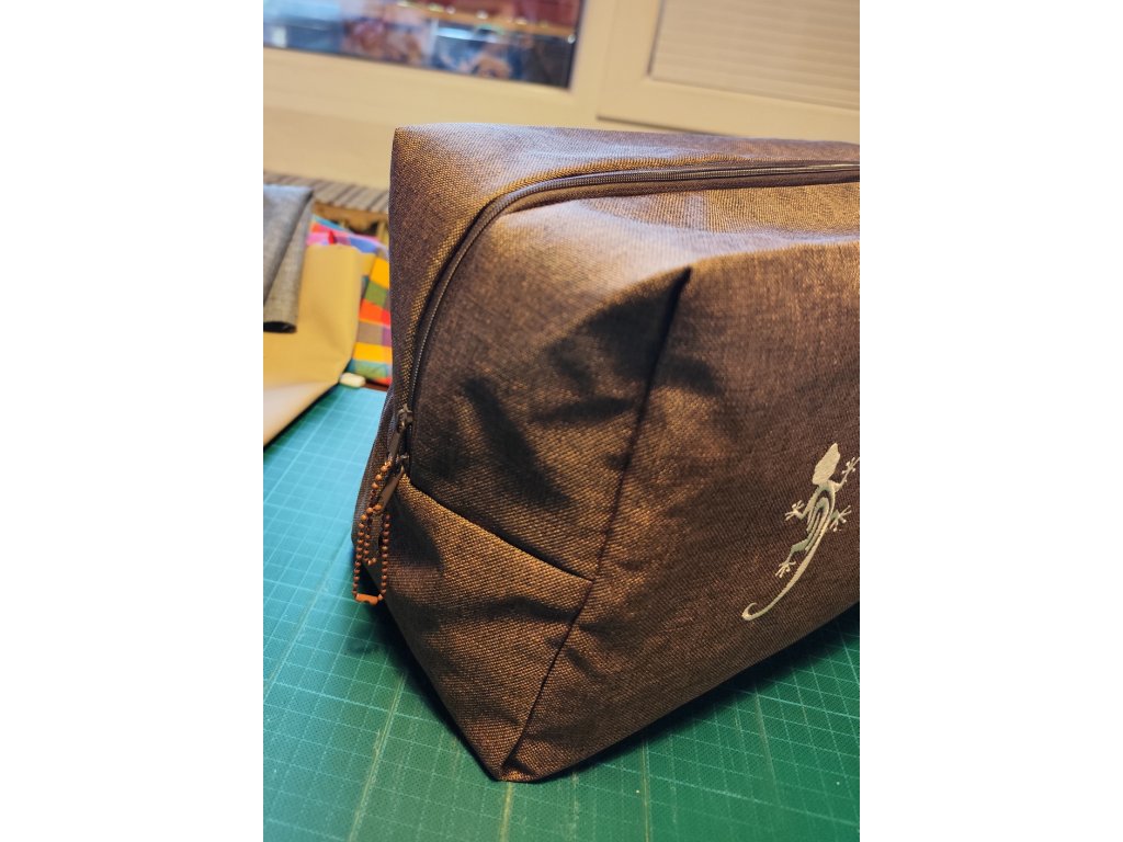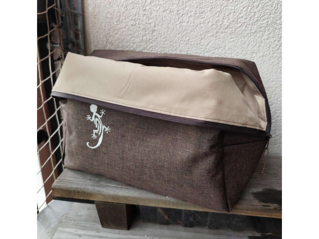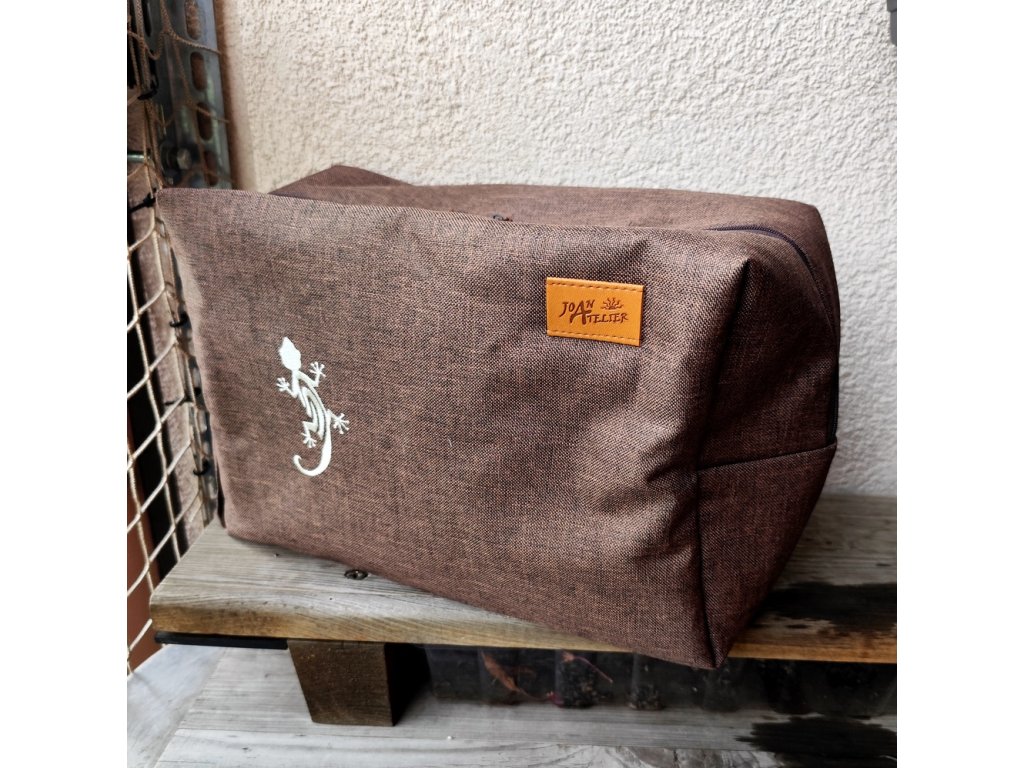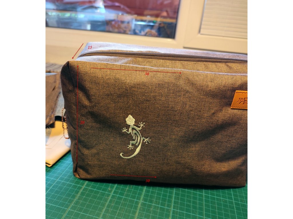 Kosmetická taška Mína spojuje praktičnost, kvalitu a originální ruční zpracování. Je vyrobena z odolné nepromokavé látky, která chrání obsah před vlhkostí i nečistotami. Díky hranatému tvaru taška perfektně drží formu a uvnitř nabízí dostatek prostoru pro veškerou kosmetiku, toaletní potřeby nebo drobné doplňky.