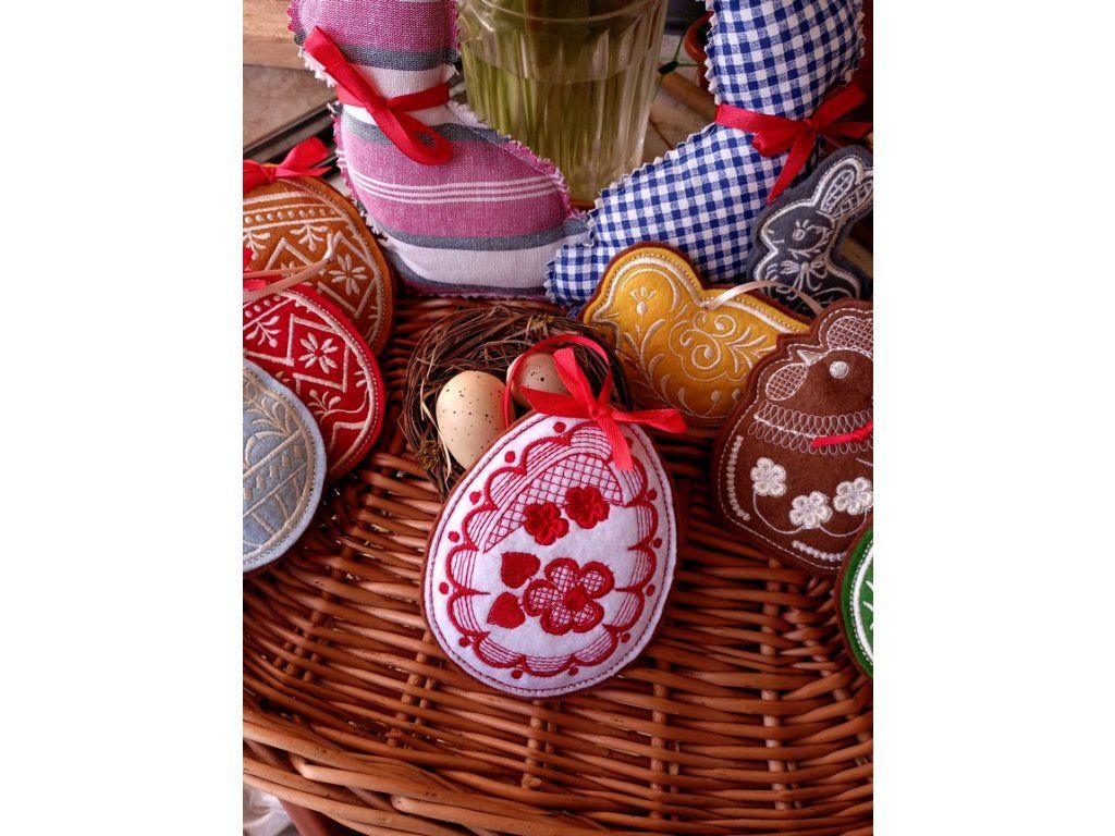 Barevná vajíčka a kuře jsou barevné a vyšívané jen z jedné strany, z druhé strany jsou barevná.