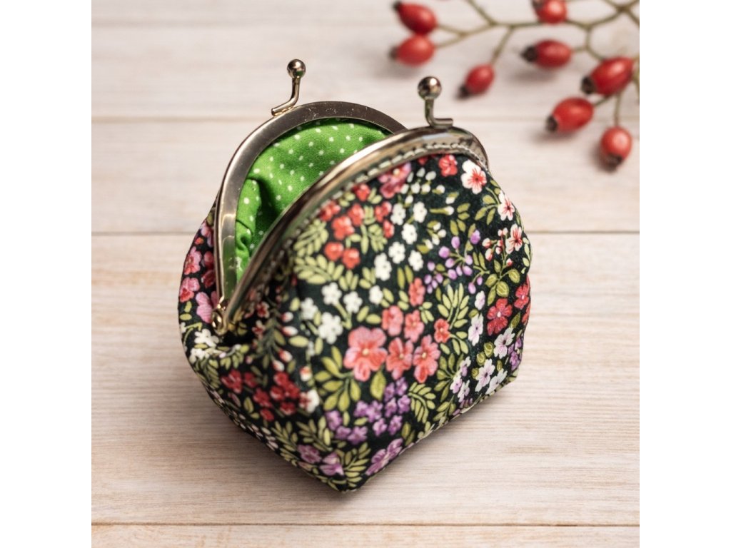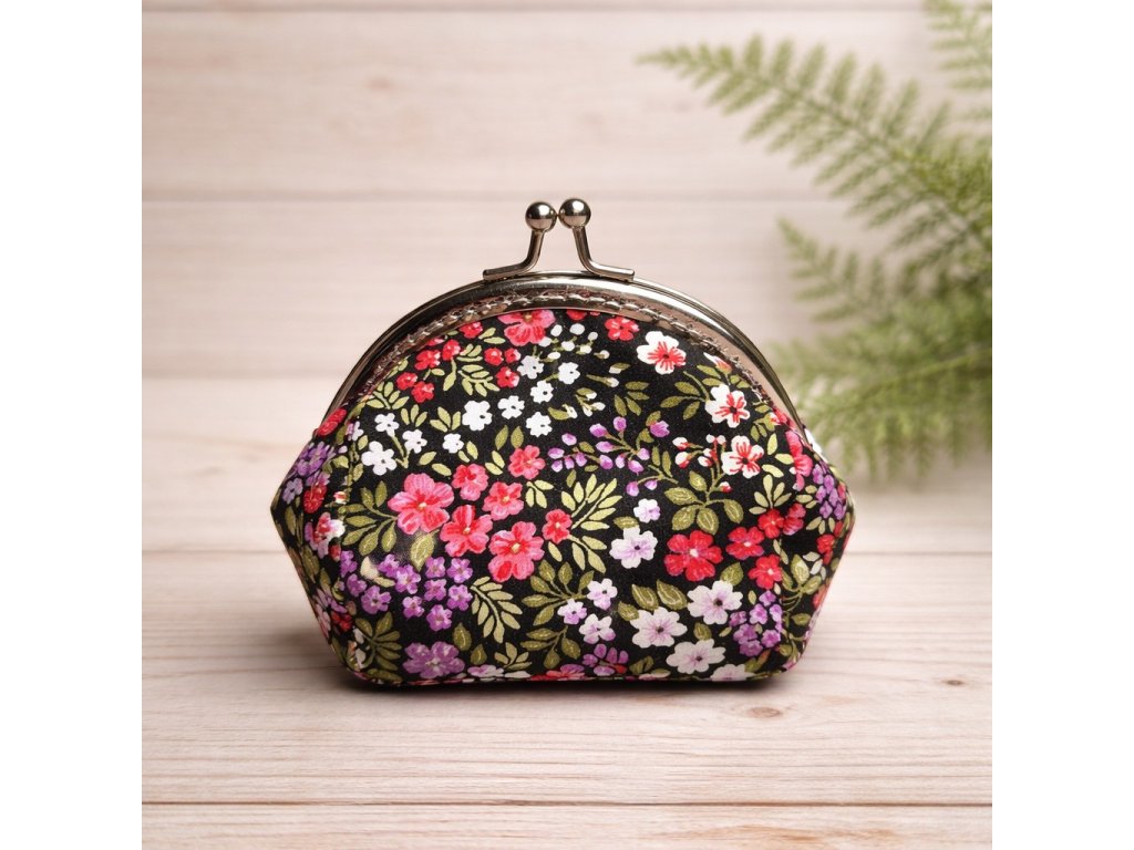 Roztomilá, maličká taštička, nebo peněženka na drobnosti s kovovým rámečkem, taštičku jsem ušila z bavlněné látky, je vyztužená, takže dobře drží svůj tvar