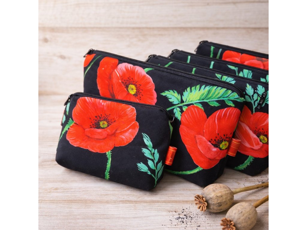 !pozor kapsičky se mohou lišit dle prostřihu látky - ale vždy na taštičce budou vlčí máky