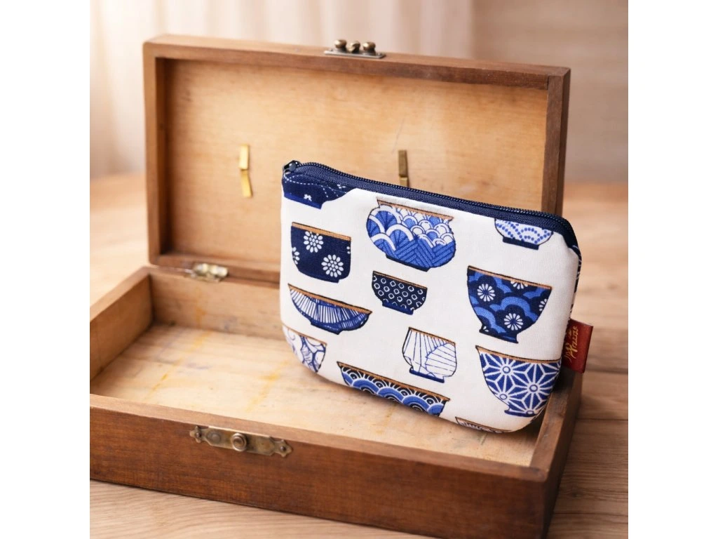 Motiv japonských misek jí dodává osobitost a nádech tradice – každý steh vypráví příběh o ruční práci,