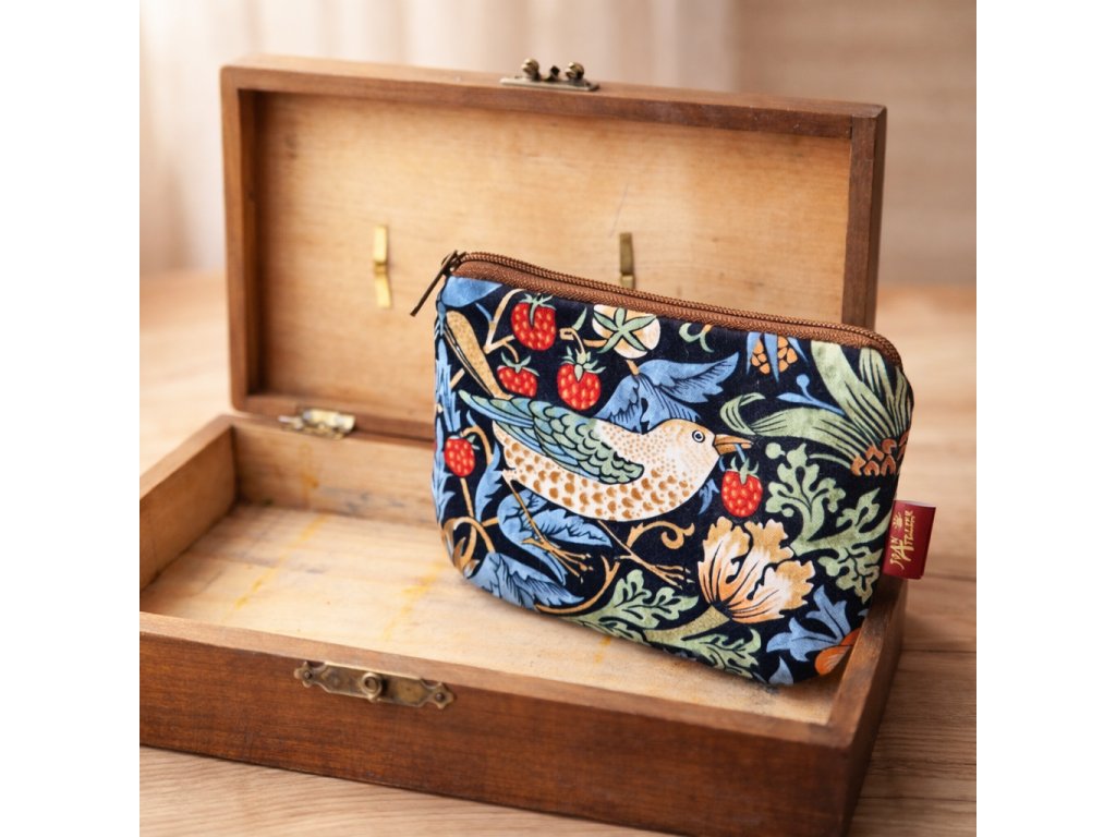 Malá taštička s velkým srdcem. Mini Mína – ptačí, je ručně šitá kapsička z bavlny, ideální na karty, drobnosti i klíče.