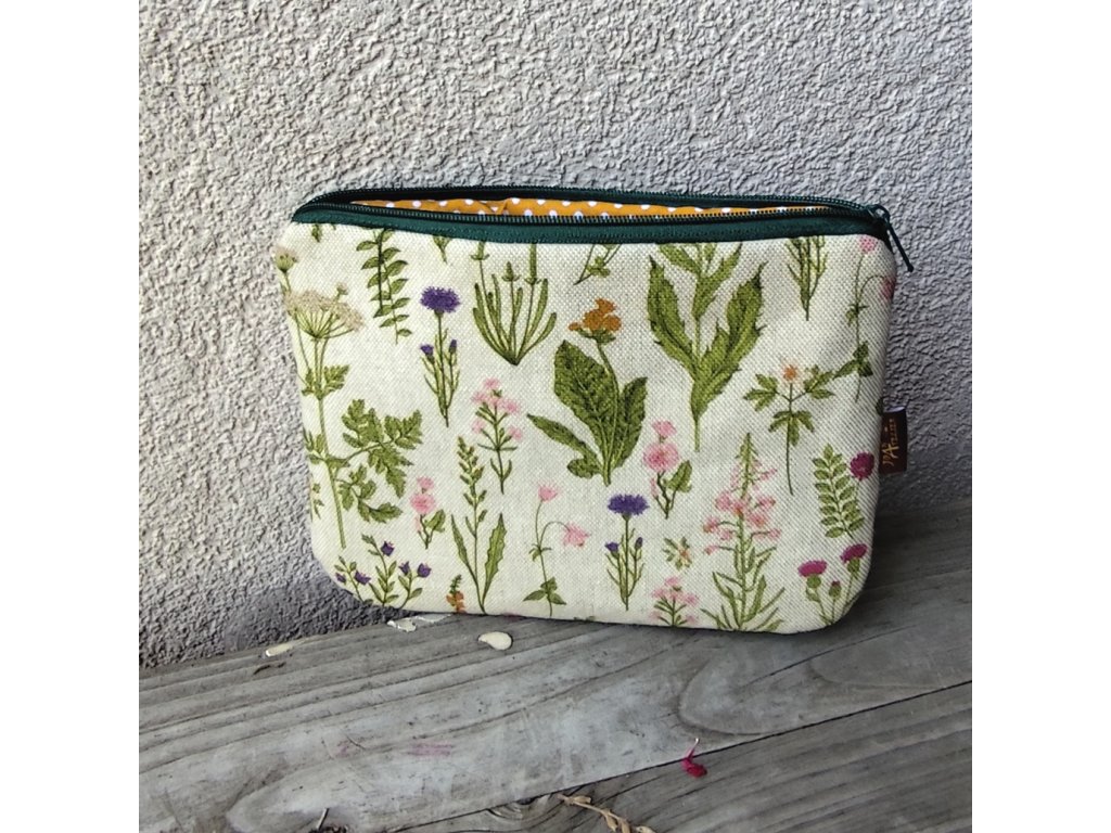 Taštička je vyrobena ze 100% bavlny, která je lehká, prodyšná a snadno se udržuje. Uvnitř najdete rovněž bavlněnou podšívku, která zajistí pevnost a dlouhou životnost. Díky svým rozměrům – šířka 19 cm a výška 13 cm – nabízí dostatek prostoru na všechny nezbytnosti, přitom se pohodlně vejde do kabelky nebo batohu.