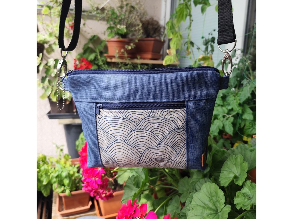 Týna je elegantní a kompaktní crossbody taštička, která je ideální pro každodenní použití. Svým minimalistickým designem se hodí ke každému outfitu. Na přdní straně je kapsička na zip, je ušita ze 100% bavlněné látky se vzorem mořských vln.