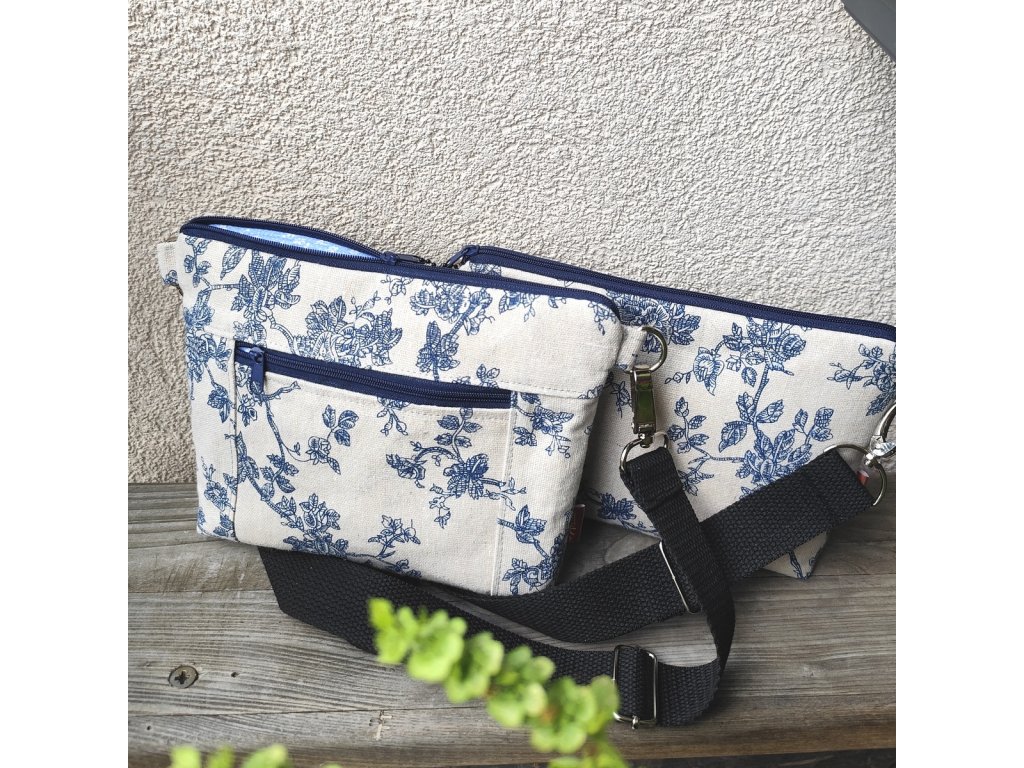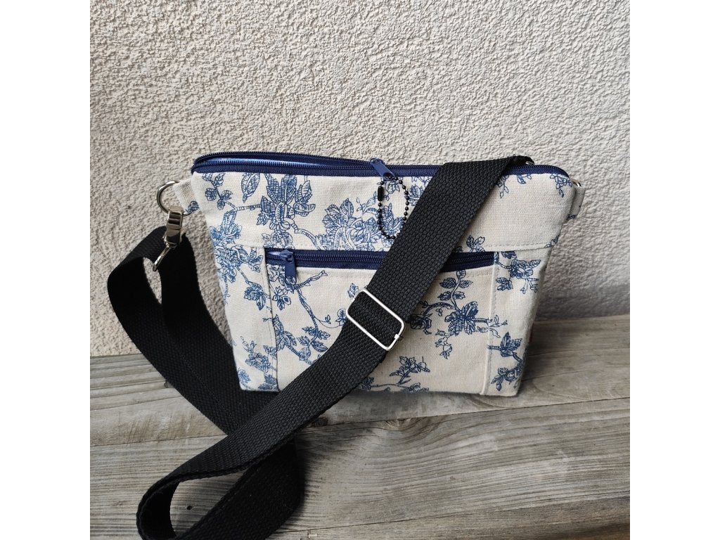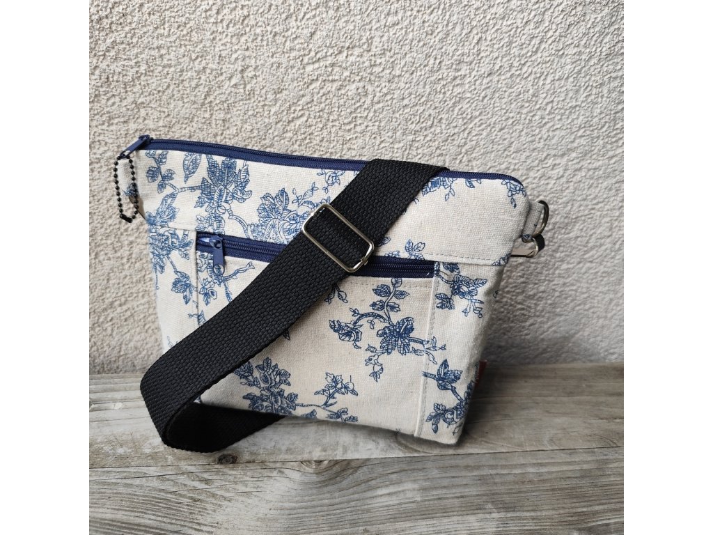 Taštička je vyrobena z kvalitní 100% bavlny, v režné barvě s modrým potiskem květin.