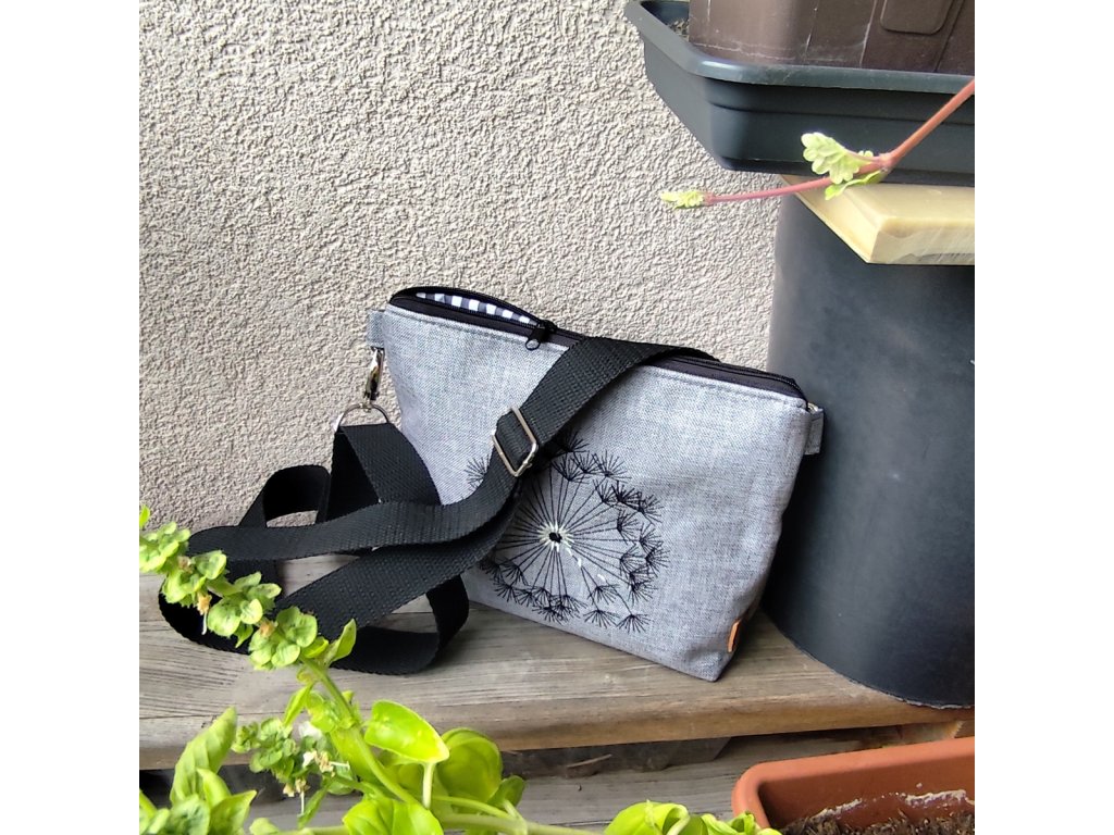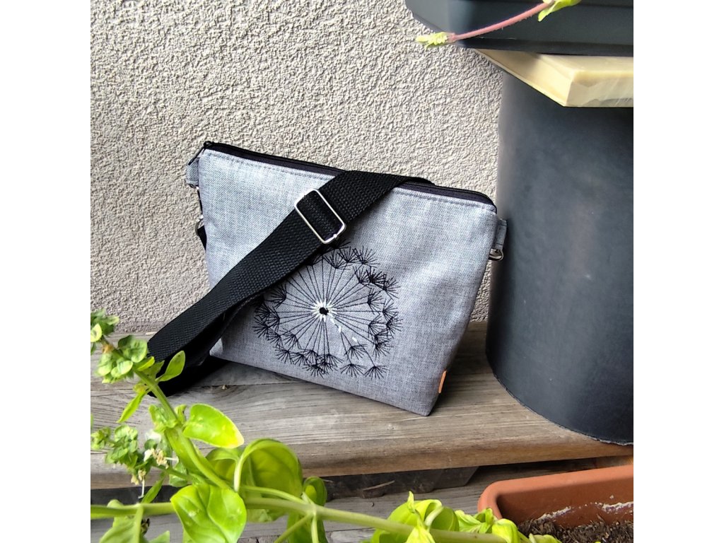 Týna - šedá crossbody taštička s výšivkou odkvetlé pampelišky 2