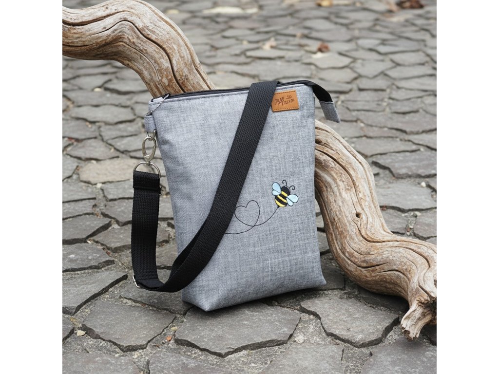 Včelka - Háta crossbody taštička, strojová výšivka