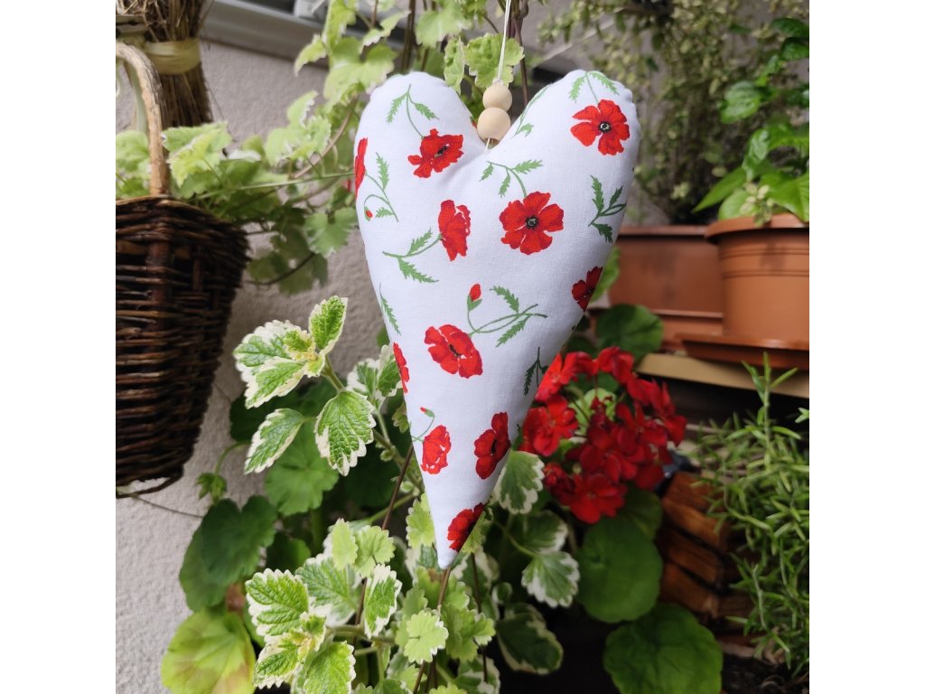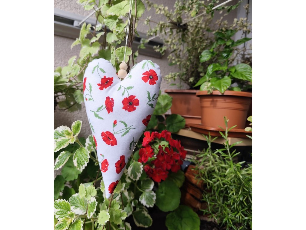 velké srdce - 12x20cm, závěs je doplněn o dřevěné korálky