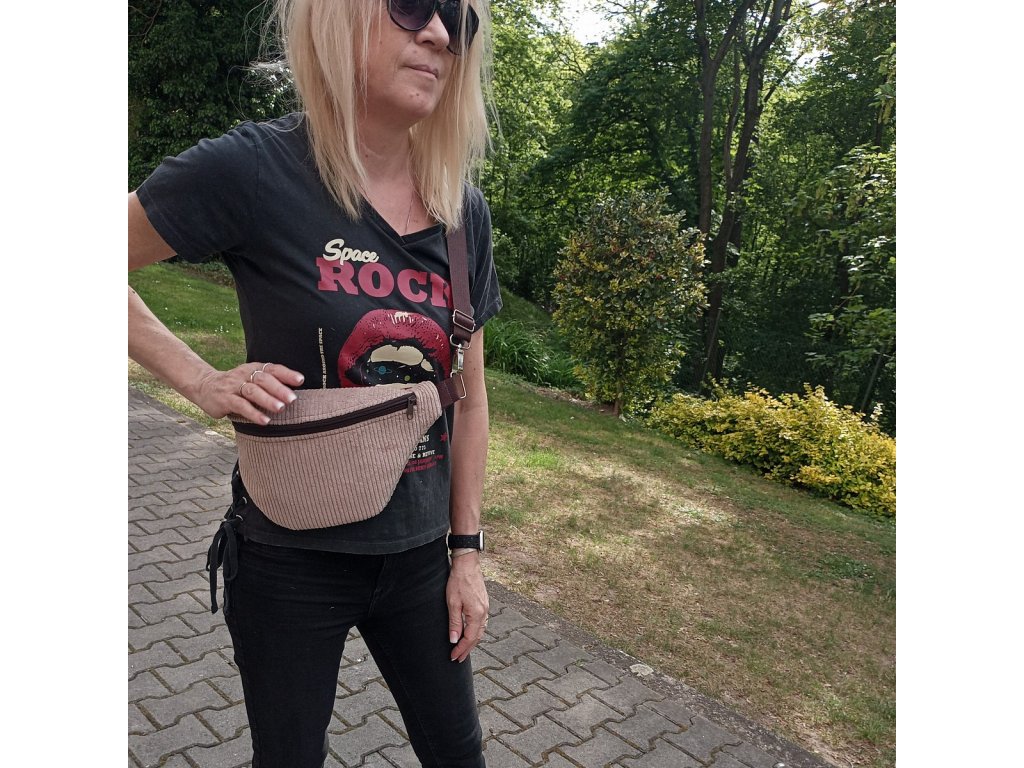 Ledvinka je primárně určena do města, ušila jsem jí z pěkného 100% bavlněného materiálu - Manšestr, pohodlně se vejde peněženka, klíče, mobil a kapesníčky...a navíc má 1 vnitřní kapsu na tajnosti.